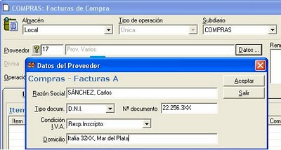 Habiendo realizado lo anterior, en el momento de cargar la factura deberá indicar ese número de proveedor y presionar el botón «Datos». De esa manera se abrirá una ventana en la que podrá cargar los datos específicos del proveedor eventual.