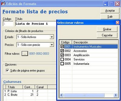 Tenga en cuenta que una vez que ha definido una lista de esta manera no podrá luego, en la emisión, filtrar nuevamente por rubro puesto que siempre prevalecerá el criterio definido en el formato.