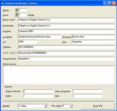 Luego de esto, debemos elegir el modelo (Sobre-Rótulo), la cantidad de copias y, finalmente, presionar «Emitir».