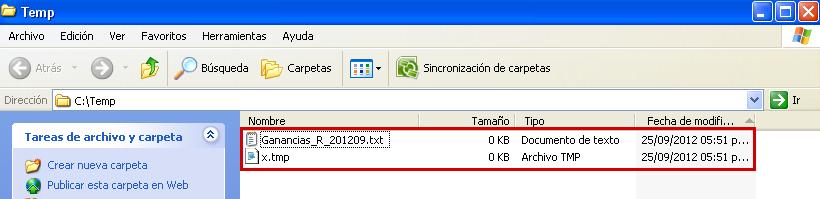 Al presionar “Aceptar”, mostrará el informe y generará un archivo, que es .txt, el cual va a parar a donde la ruta le indicó, en este caso es el disco C:Temp.