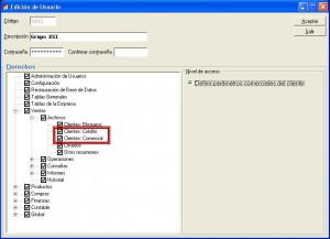 Una vez allí, debemos seleccionar a un usuario determinado, ir a Ventas-Archivos y tildar las opciones “Clientes: Crédito” y “Clientes: Comercial”
