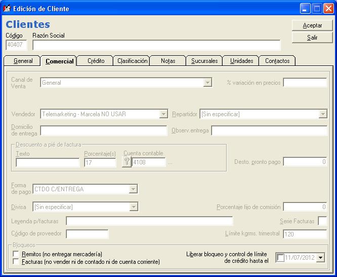 Y ahora sí podremos editar las solapas “Comercial” y “Crédito” en la ficha del cliente.
