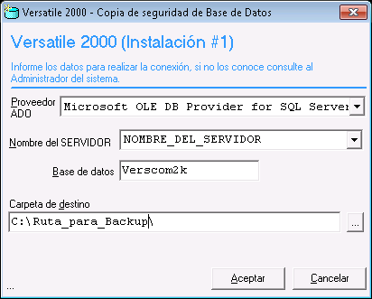 4. Completar los datos tal como muestra la imagen, es decir, indicando el nombre del servidor y la ruta de destino para el archivo de backup: