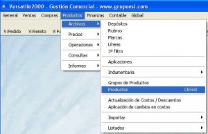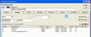 Para lograr esto es necesario mantener actualizados los precios que nos ofrecen los distintos proveedores. Esto se controla en la ficha de los productos, en Productos/Archivos/Productos.