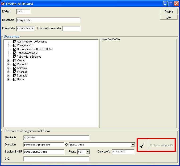 Ahora es posible configurar el sistema para enviar correos electrónicos de forma directa (sin tener instalado un cliente de correo electrónico, tal como Outlook)