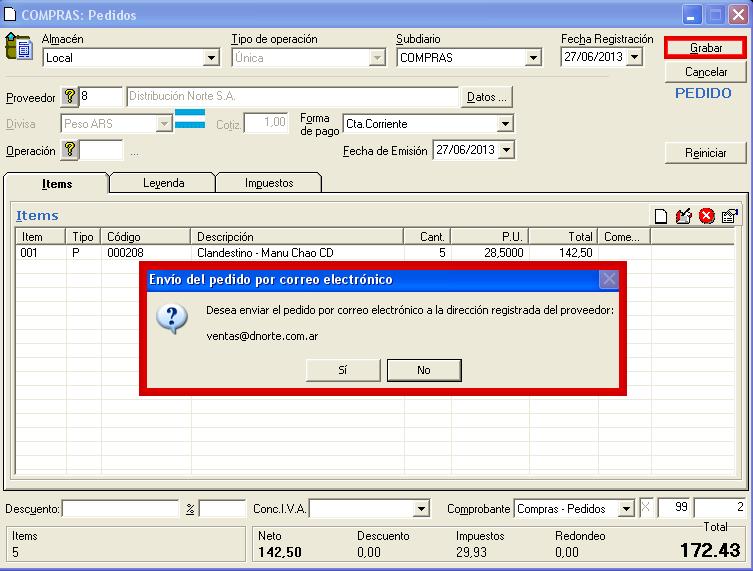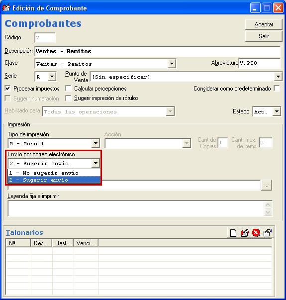 Las operaciones desde las cuales se pueden enviar e-mails desde el sistema son: