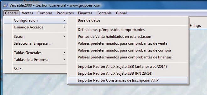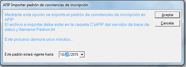 General > Configuración > Importar Padrón Constancias de Inscripción AFIP