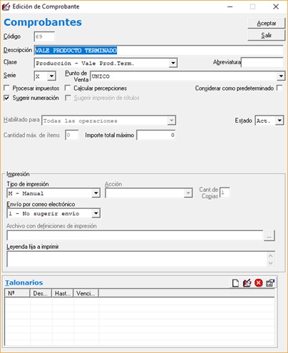 Lo primero que tenemos que hacer, es dar de alta los siguientes comprobantes