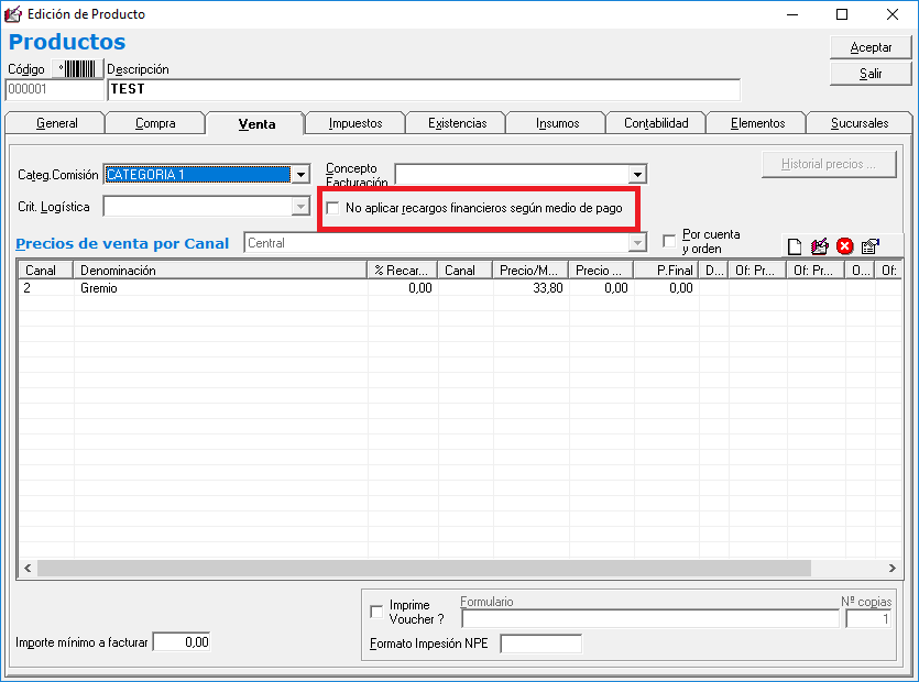 El sistema incorporó la posibilidad de inficar que algunos productos determinados, no sean alcanzados por los recargos financieron que se cargan al seleccionar el medio de pago.