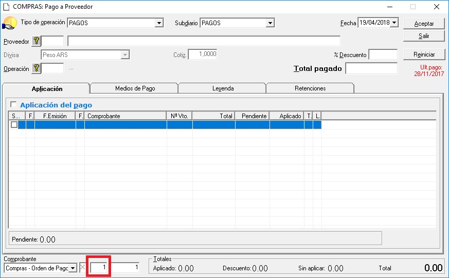 Para cambiar el punto de venta, lo que llevará nuestra numeración nuevamente a 1, simplemente lo cambiamos al realizar la próxima Orde de Pago en el lugar que se muestra en la imágen