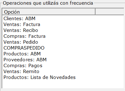 Ahora, al iniciar sesión con su usuario, en la pantalla de inicio del sistema aparecerá un listado con las opciones que más frecuentemente utiliza.