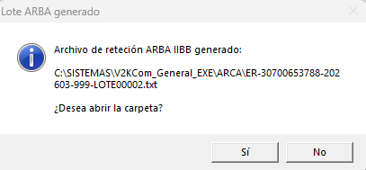 Al confirmar el mensaje que aparece en pantalla, podrán visualizar los archivos de retención de IIBB generados.