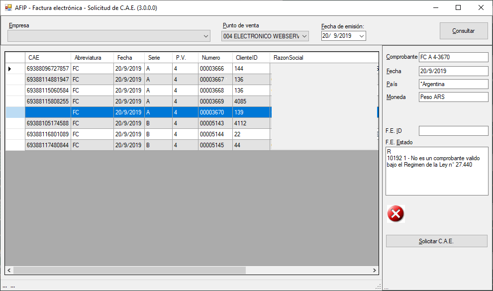 Si queremos realizar una factura normal y el mensaje que muestra el webservice de AFIP es este, quiere decir que tendremos que realizar una de las nuevas facturas.