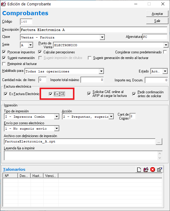 Si les sucede esto, deberán comunicarse con nosotros para ver de actualizar el sistema a la nueva versión que incluye este tipo de factura nuevo.
